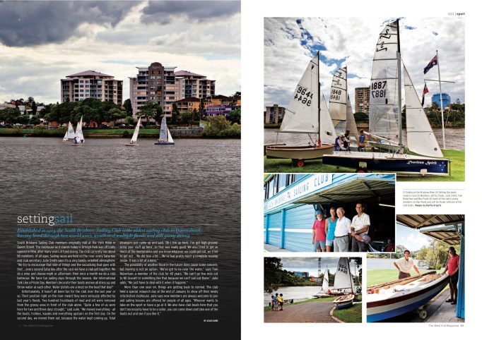 Story about the South Brisbane Sailing Club published in the West End Magazine. Click on the image to read.