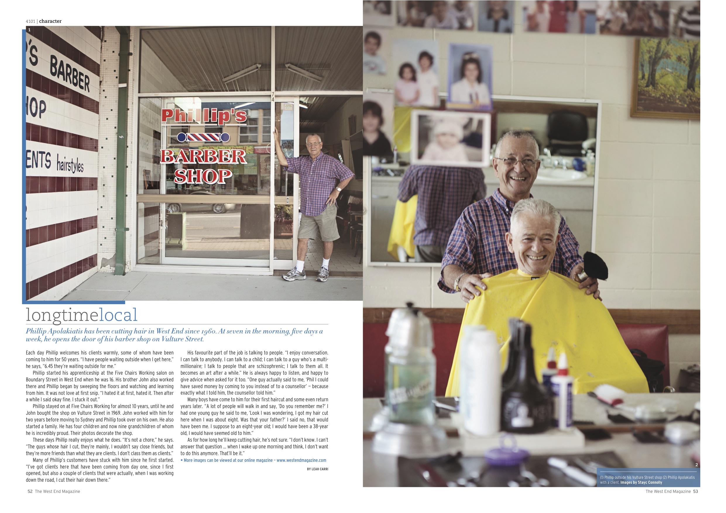 My story about local barber Phillip Apolakiatis published in The West End Magazine. Click on the image to read, or you can read it online here.