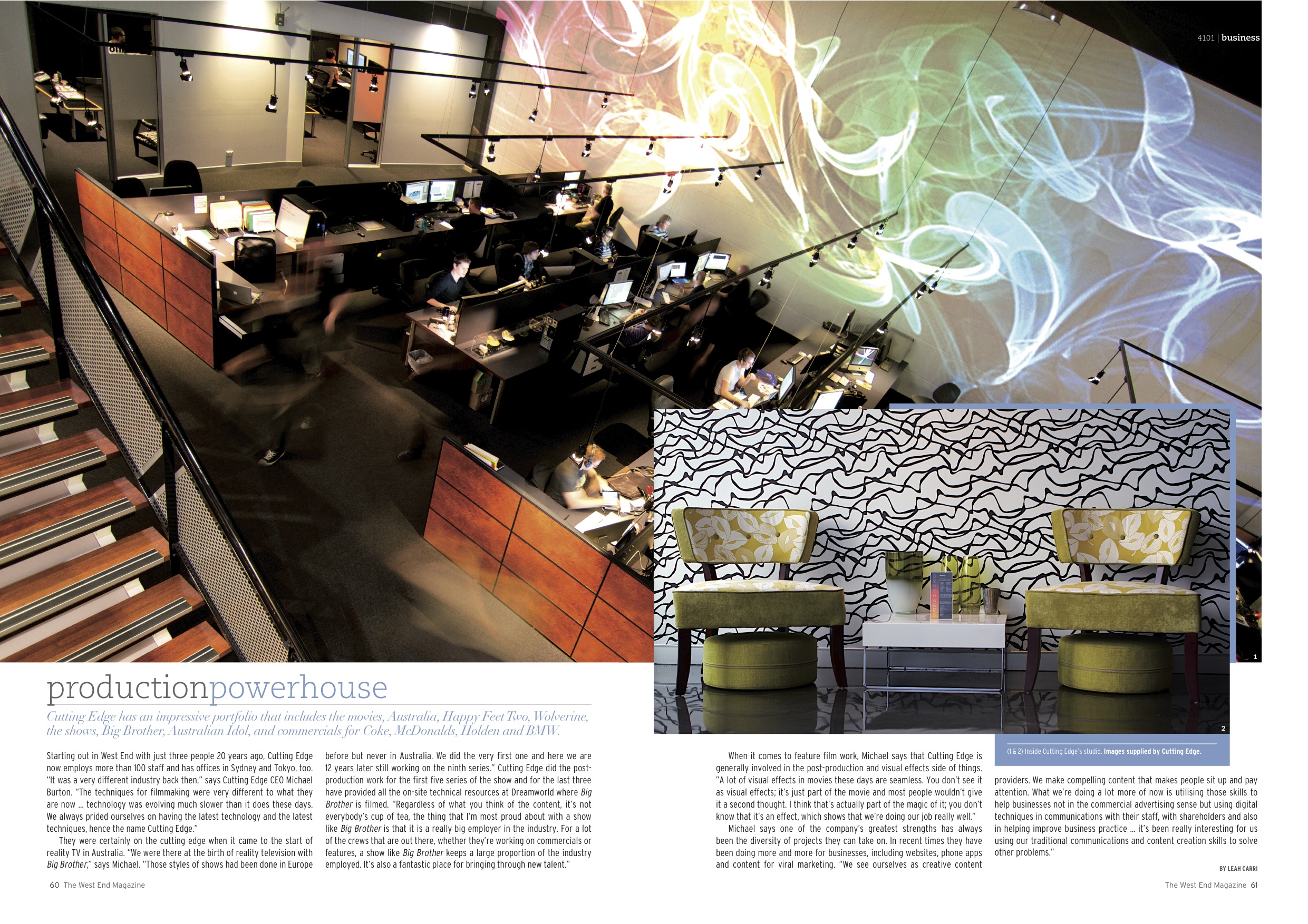 “Cutting Edge has an impressive portfolio that includes the movies Australia, Happy Feet Two, Wolverine, the shows Big Brother, Australian Idol, and commercials for Coke, McDonalds, Holden and BMW.”